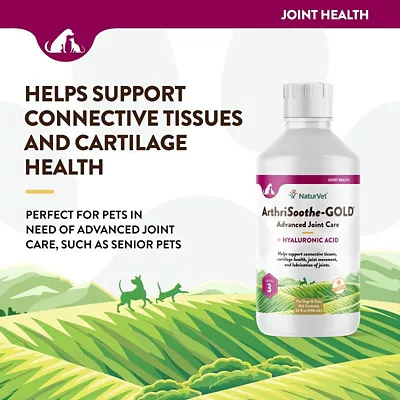 Looking for pet supplements to keep your furry friend in tip-top shape? Try the NaturVet ArthriSoothe Gold Liquid! These joint health supplements for dogs will also work for your cat. NaturVet ArthriSoothe-GOLD is an advanced liquid joint supplement for dogs and cats that contains powerful ingredients like Hyaluronic Acid, MSM, Chondroitin, and Glucosamine to help support healthy hip and joint function. Perfect for dogs and cats in need of advanced joint care, such as senior pets and pets recovering from joint-related injuries or surgery. Place correct dosage in your fur baby’s pet food bowl.