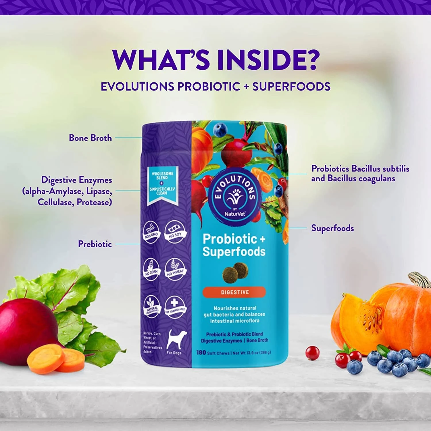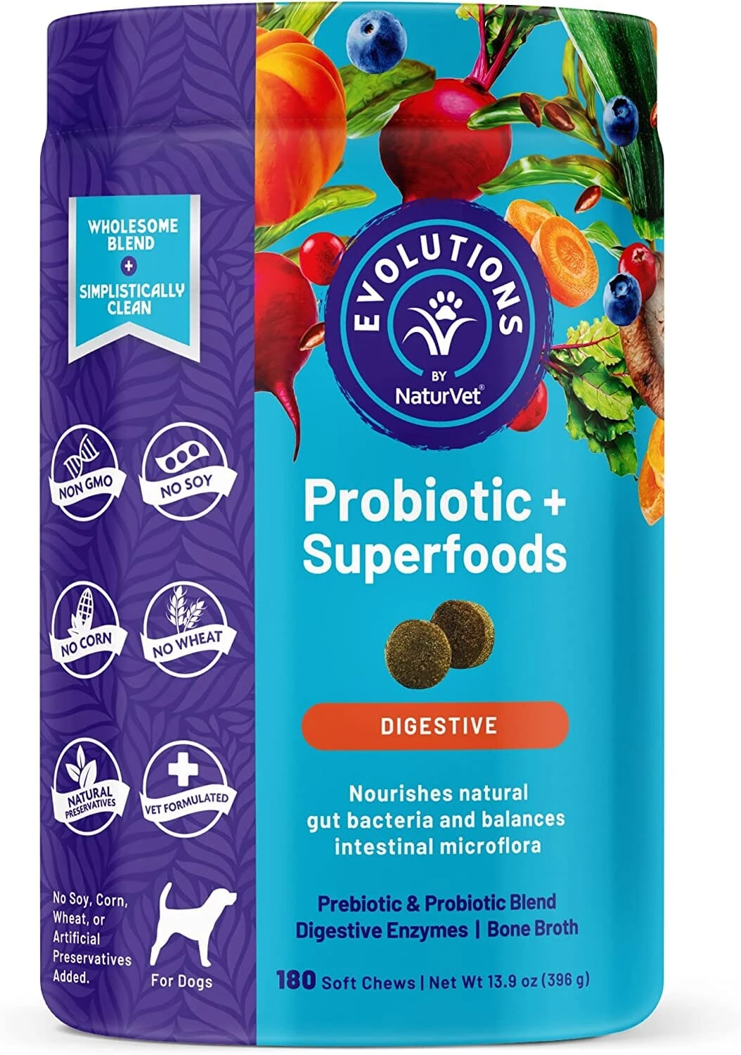 Naturvet Evolutions Probiotic + Superfoods Soft Chews Dog Supplements – 180 Count