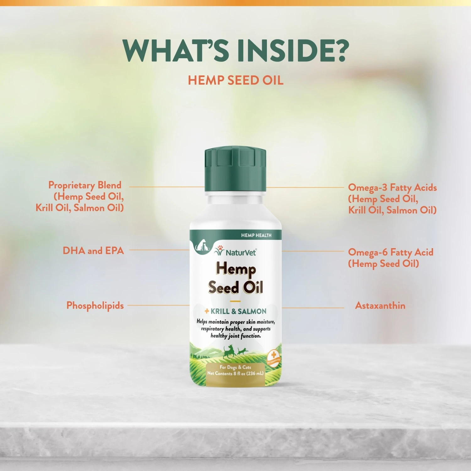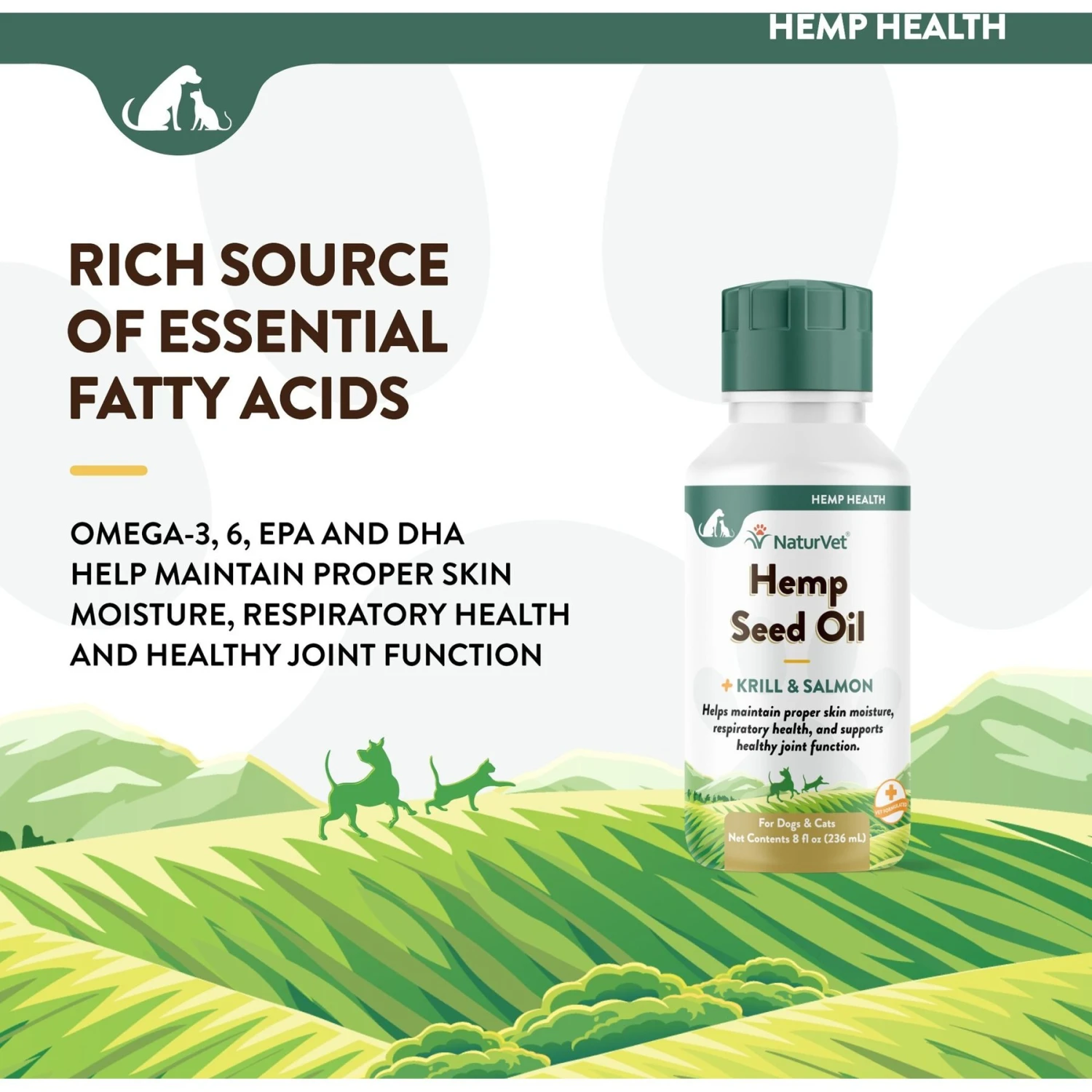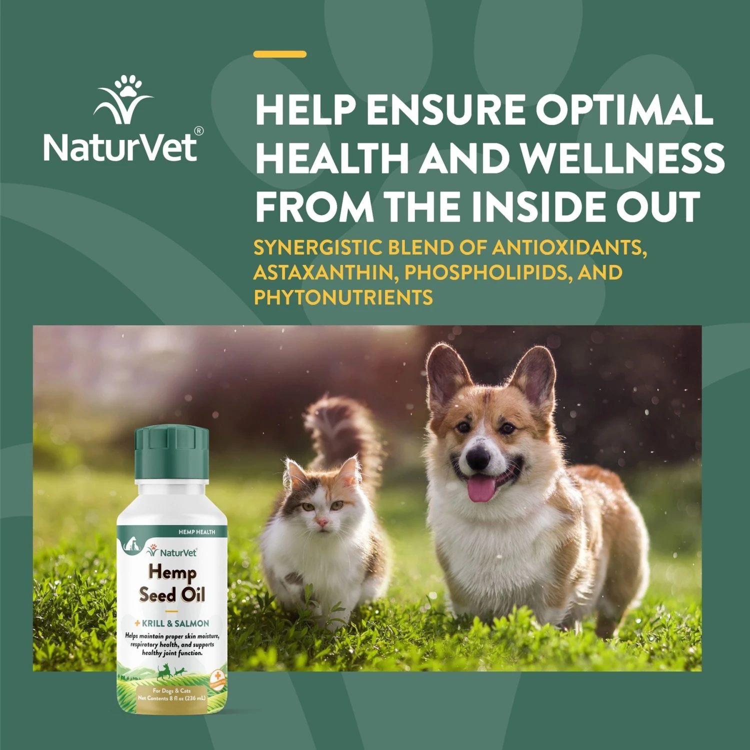 Help support your pet’s health from the inside out with NaturVet’s Hemp Seed, Krill, & Salmon Oil. This dog and cat supplement offers a healthy source of omega-3 and omega-6 fatty acids, and natural antioxidants with a proprietary blend of hemp seed oil, krill oil and salmon oil. These ingredients not only help your BFF maintain proper skin moisture, but can also help support their joint and respiratory health, including occasional or seasonal allergies! This supplement is made in the USA and formulated by veterinarians, so you can feel confident feeding it to your paw-tner.
