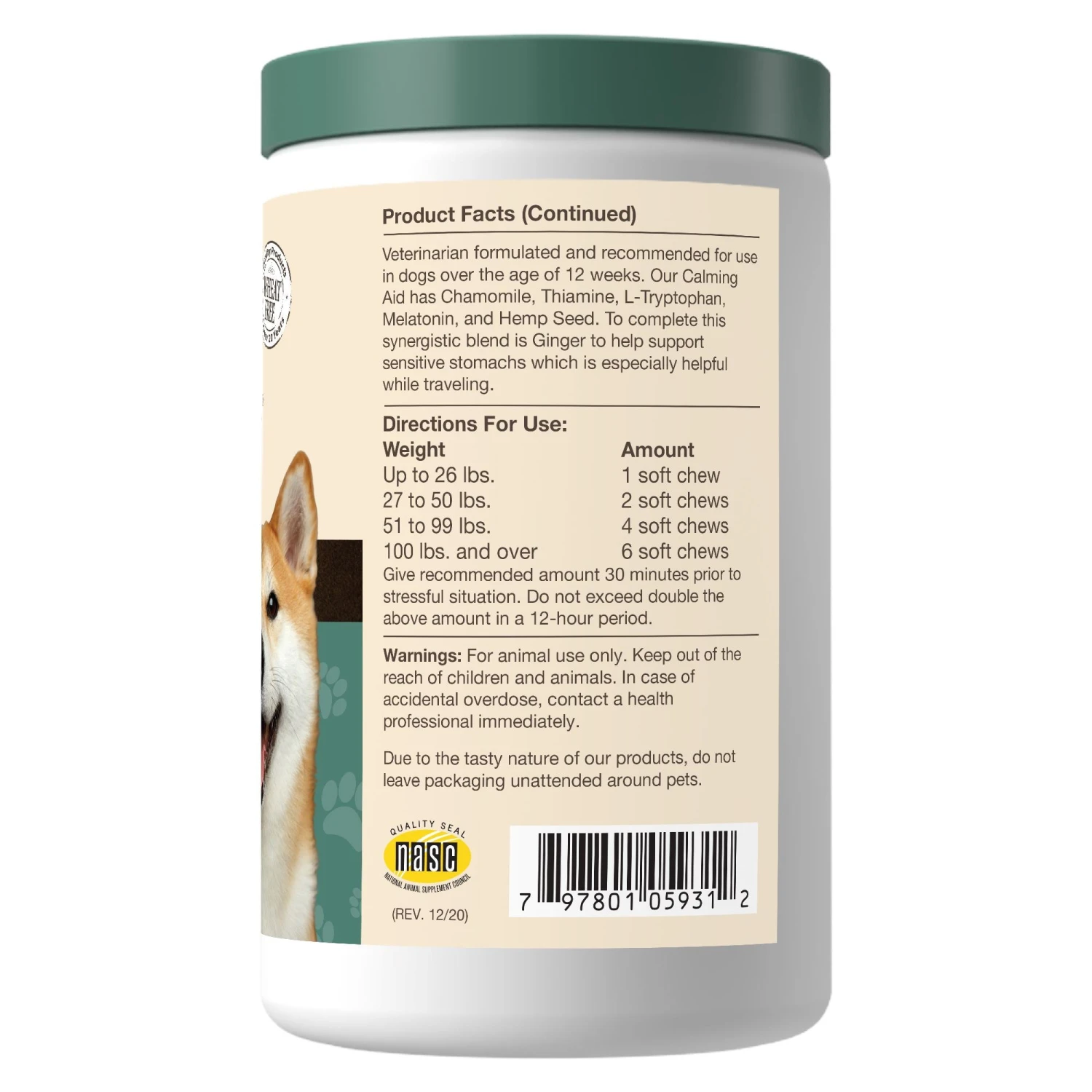 Naturvet Hemp Quiet Moments Plus Hemp Seed Soft Chew Cat and Dog Supplements – 60 ct Jar