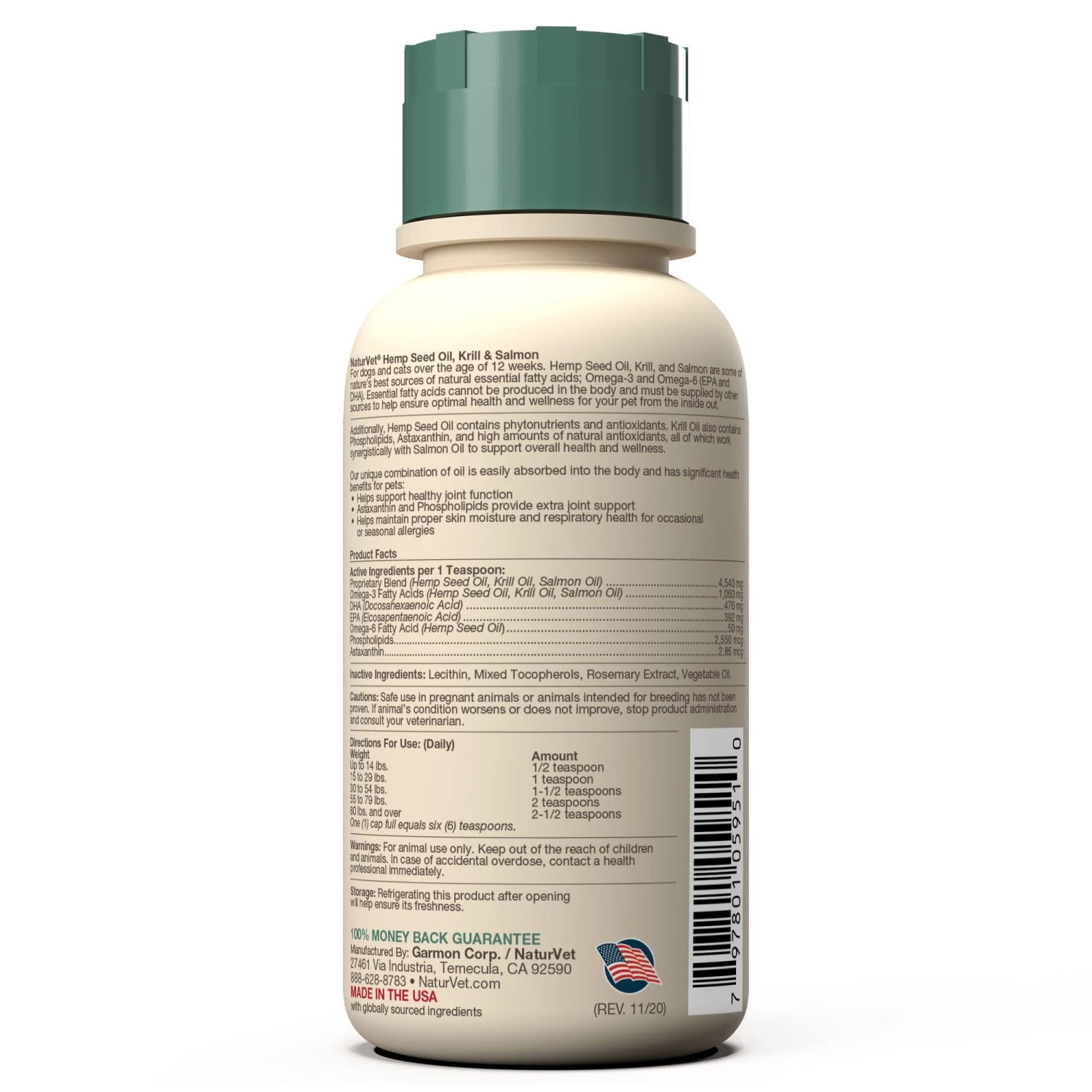 Naturvet Hemp Seed Oil Krill Oil & Salmon Oil Cat and Dog Supplements – 8 oz