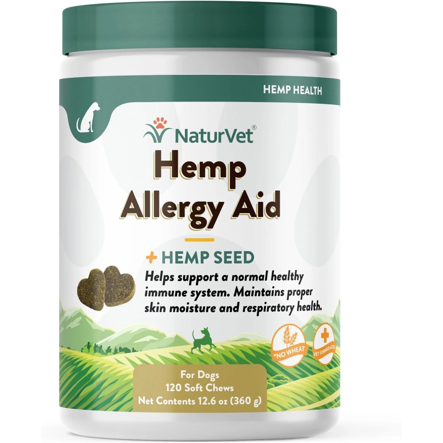 For those pups with seasonal allergies, NaturVet Hemp Allergy Aid Plus Hemp Seed has got you covered. This soft chew is formulated by veterinarians with antioxidants, omegas, DHA, EPA and hemp seeds to help maintain proper skin moisture and respiratory health. Plus, the omegas 3, 6 and 9, hemp seed oil and powder, plus turmeric root are perfectly blended to help support your pal’s allergies.