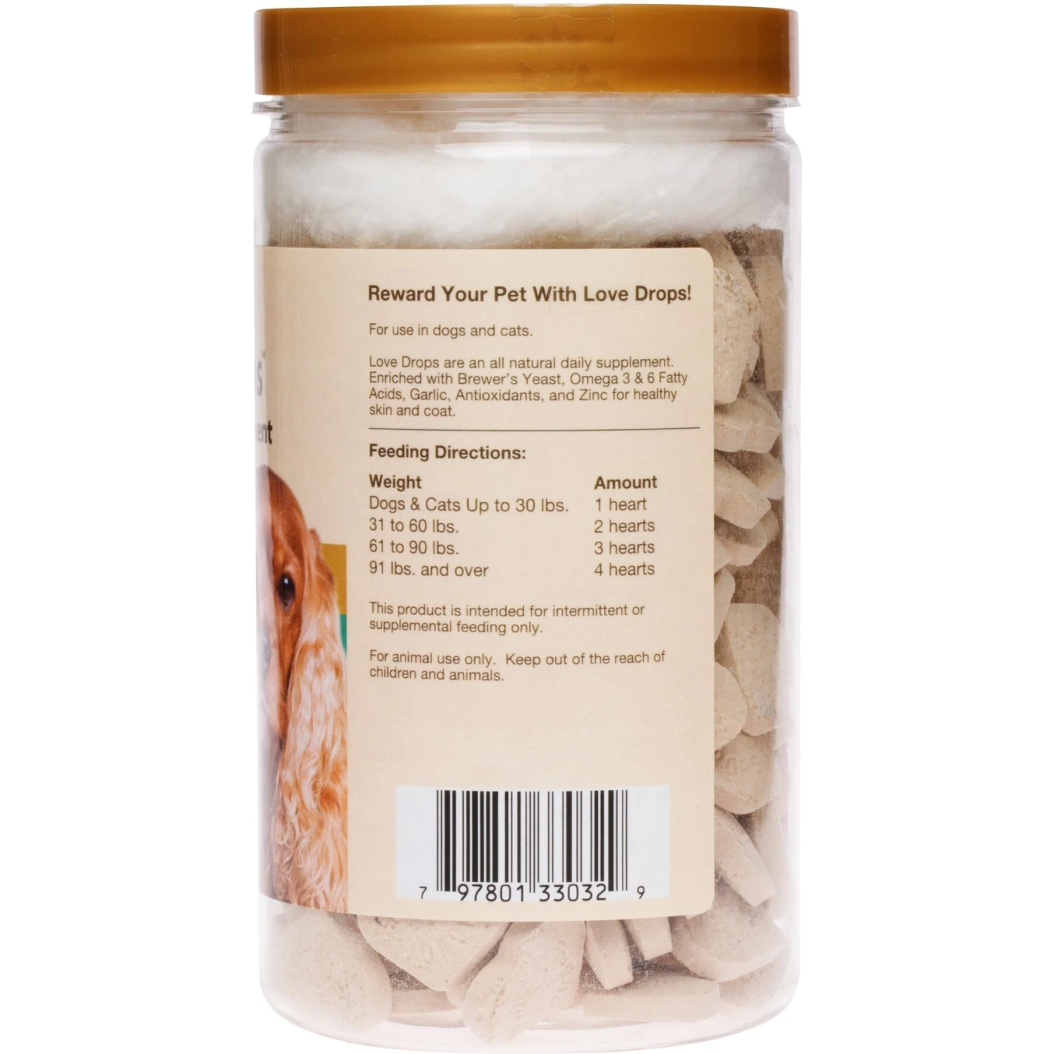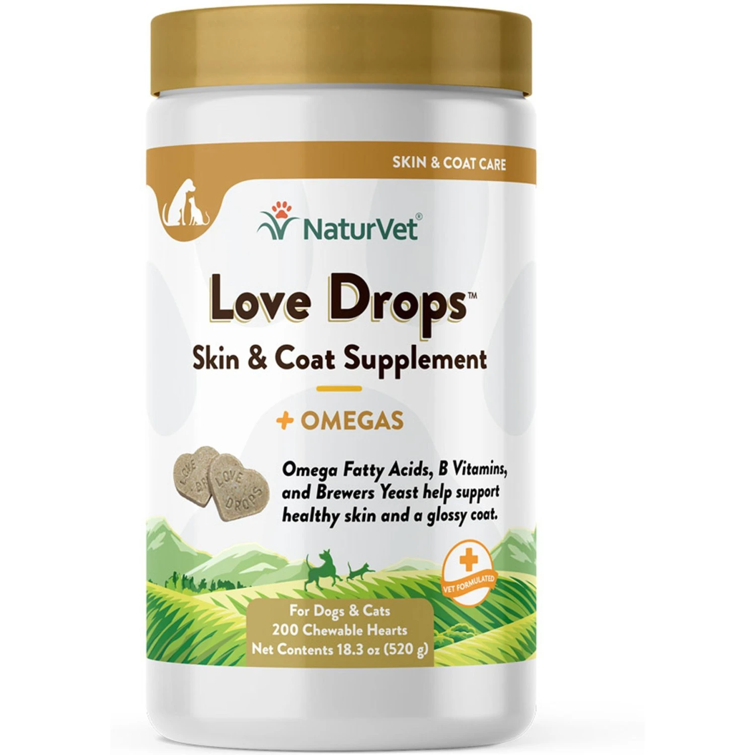 Flavored with peanut butter, extremely palatable! Love Drops are a natural daily skin and coat supplement for dogs and cats. Extremely palatable, even the most finicky pets will love the taste.