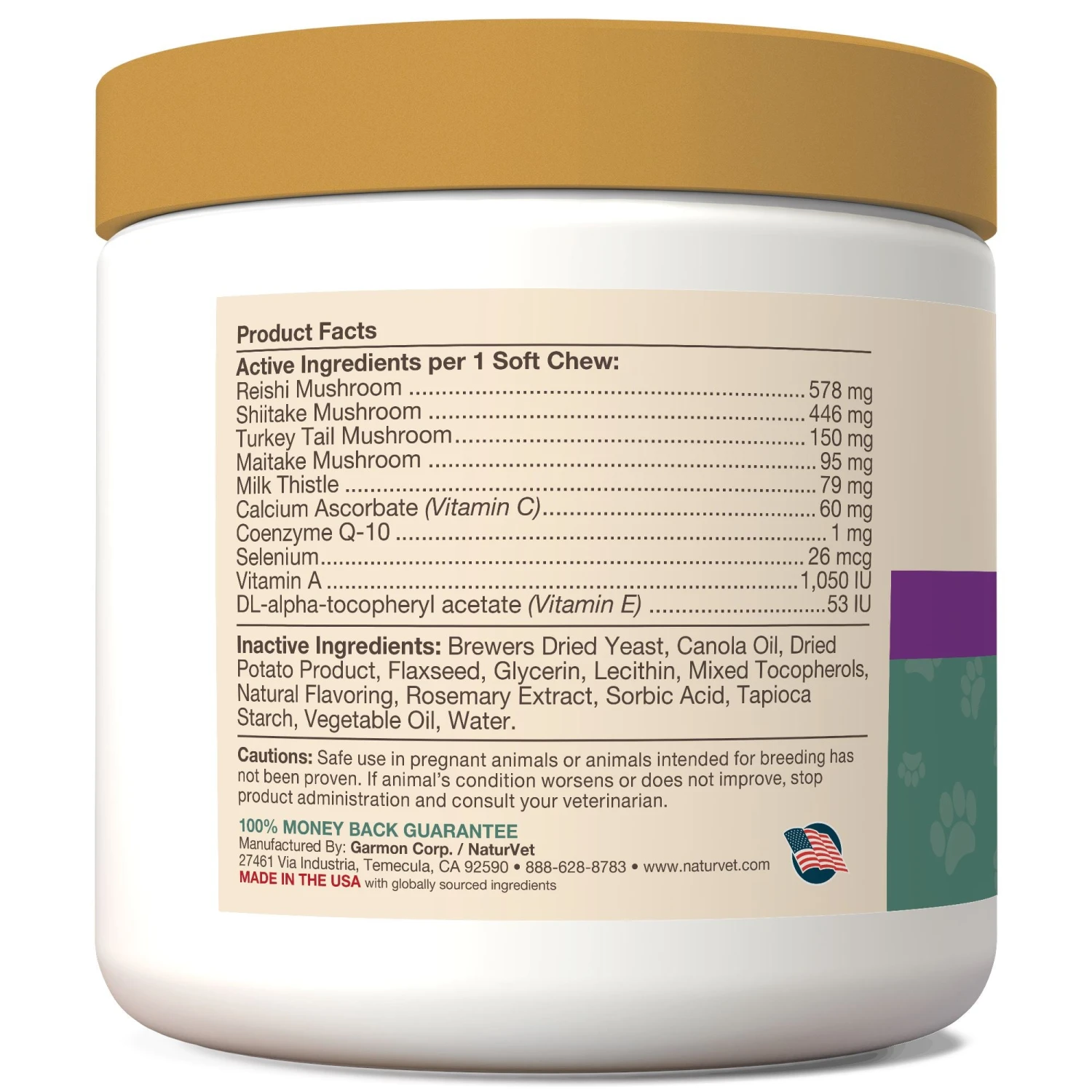 Naturvet Mushroom Max Advanced Immune Support Cat And Dog Vitamins – 60 Ct Jar