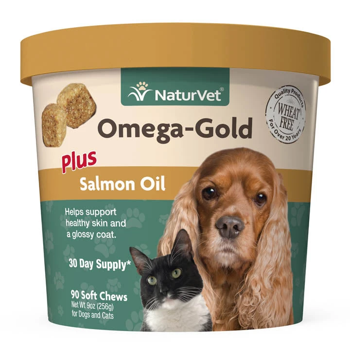 Naturvet Omega Gold Plus Salmon Oil Soft Chew Cat and Dog Supplements – 90 ct Cup