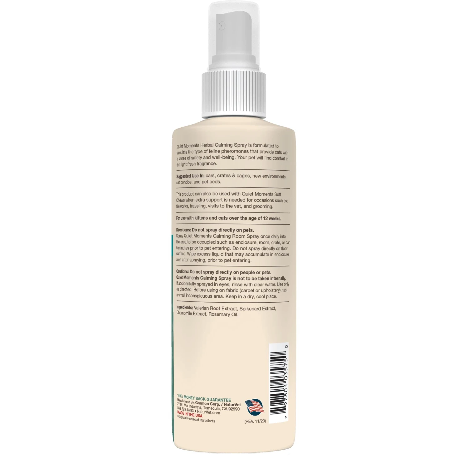 Naturvet Quiet Moments Herbal Calming Cat Spray – 8 Oz Bottle