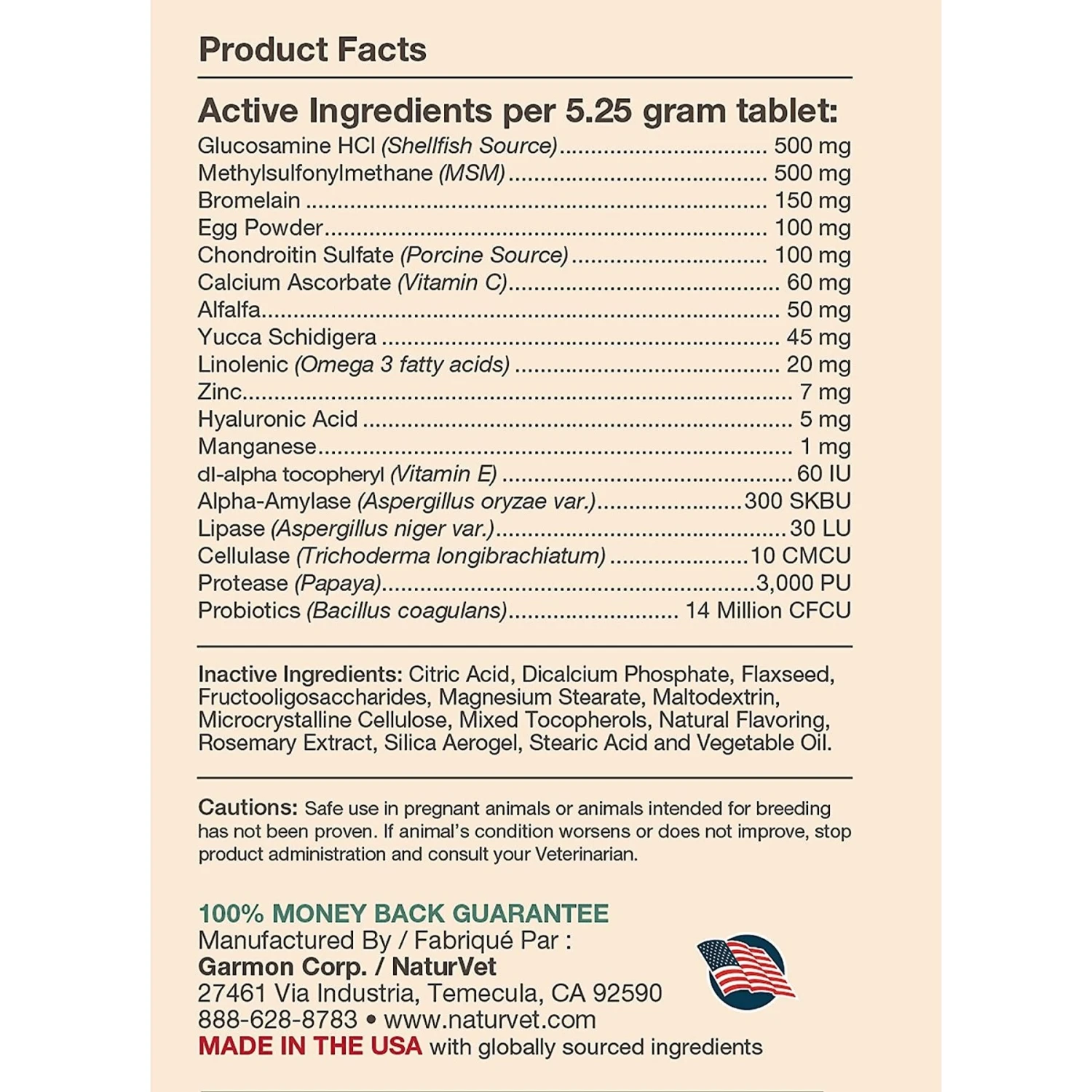HAZARDS TO ANIMALS: Safe use in pregnant animals or animals intended for breeding has not yet been proven. If lameness worsens, discontinue use and contact your veterinarian. Administer during or after the animal has eaten to reduce incidence of gastrointestinal upset. WARNING: For animal use only. Keep out of the reach of children and animals. In case of accidental overdose, contact a veterinarian immediately.