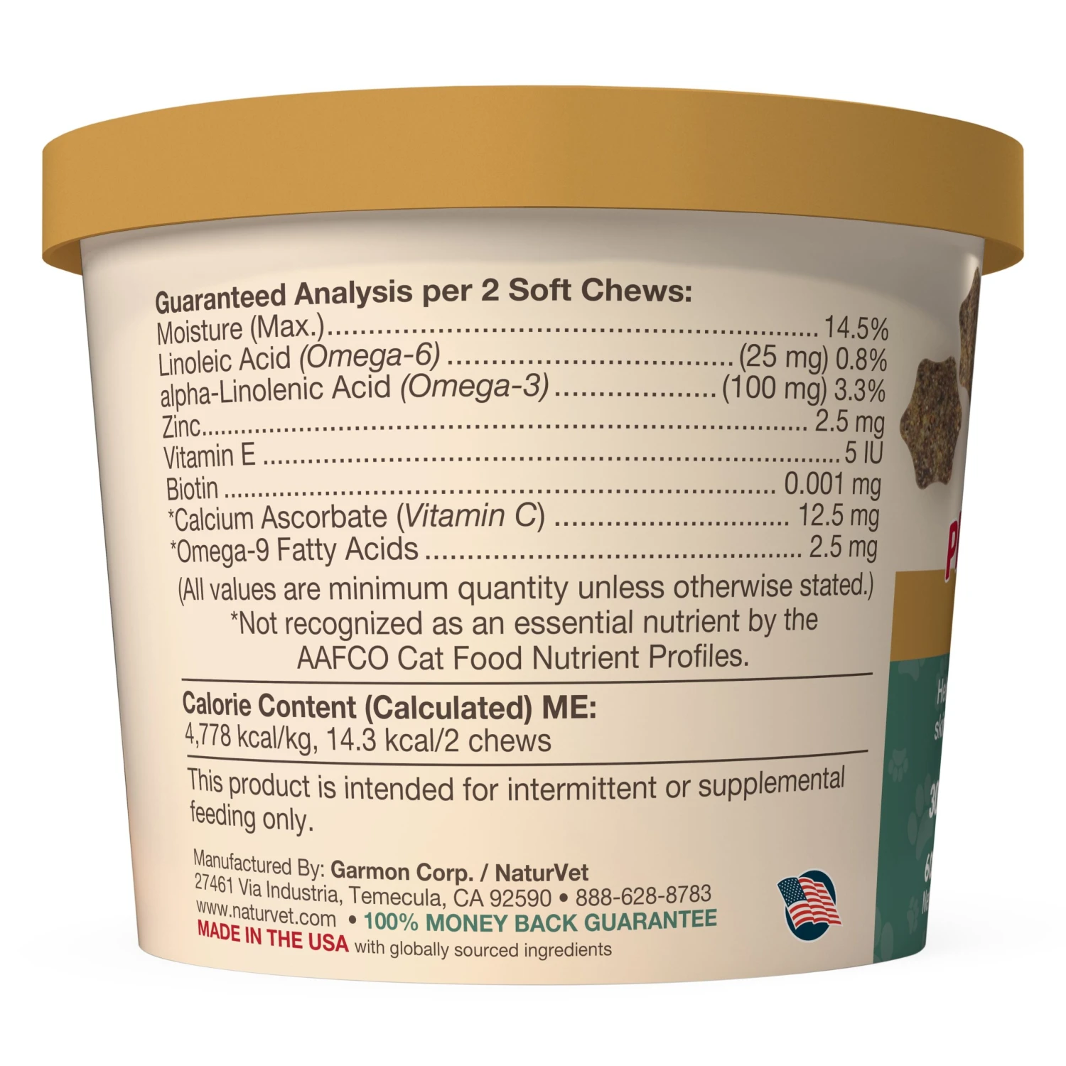 Naturvet Skin & Coat Plus Omegas Cat Chewy Supplements – 60 Ct Cup