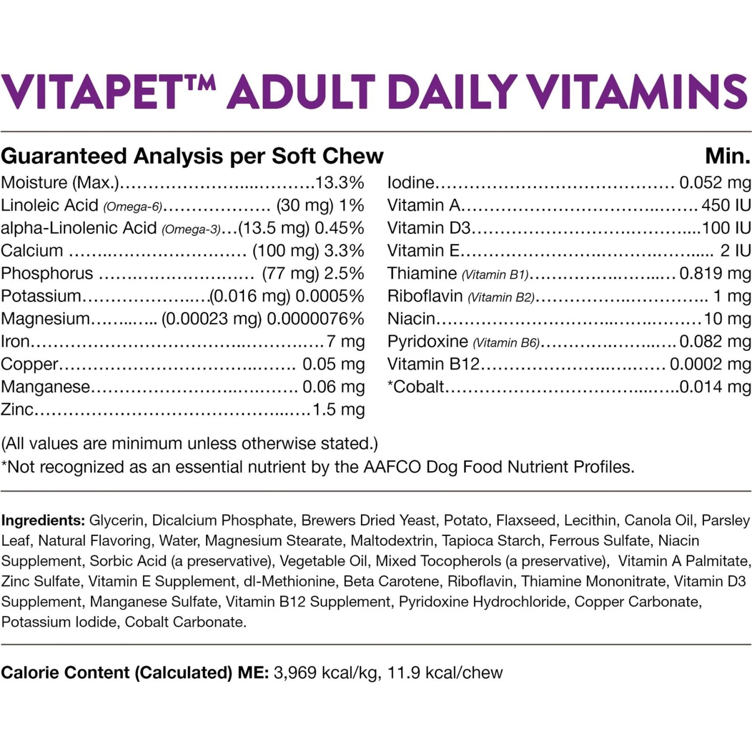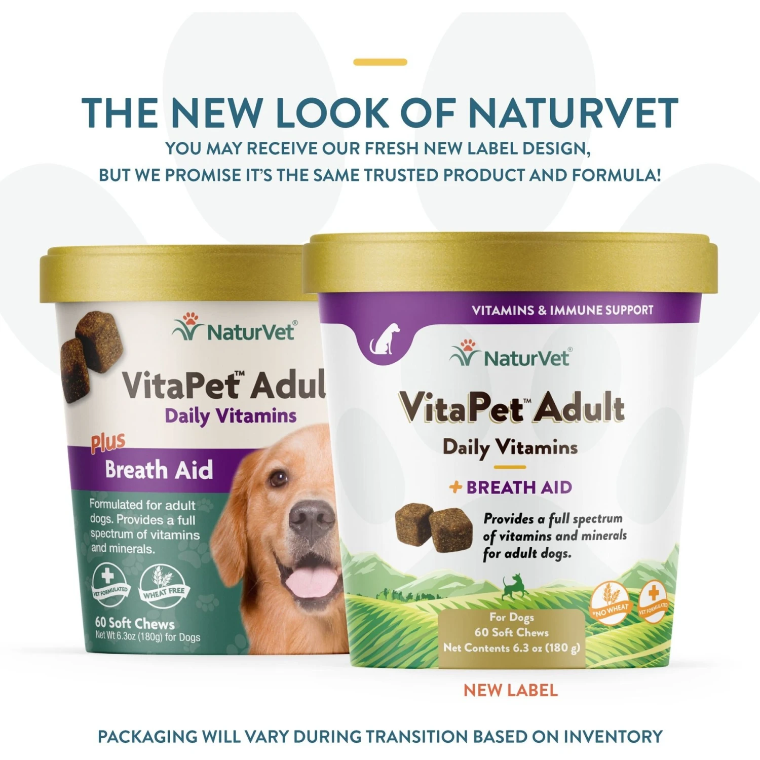 NaturVet Vita Pet Adult Plus Breath Aid Soft Chews for Dogs is formulated specifically for adult dogs. Provides a full spectrum of essential vitamins, minerals, amino acids, and fatty acids to help maintain general health while promoting fresh breath.